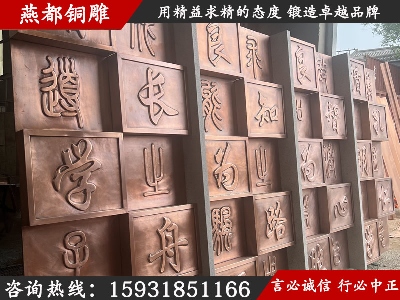 燕都銅雕工程案例——山東煙臺(tái)致良中學(xué)墻面鍛銅浮雕墻面
